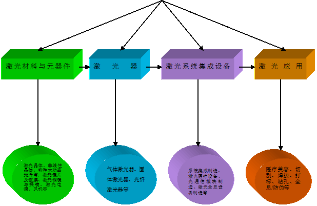 構(gòu)建了以鏡片、鍍膜、芯片、封裝、電源、激光器等為主的激光元器件產(chǎn)業(yè)鏈上游板塊,以激光切割機(jī)、焊接機(jī)、打標(biāo)機(jī)、激光醫(yī)療設(shè)備、光機(jī)電軟一體化等為主的激光裝備產(chǎn)業(yè)鏈中游板塊,以激光熔覆、焊接、儀器等為主的激光應(yīng)用產(chǎn)業(yè)鏈下游板塊。
