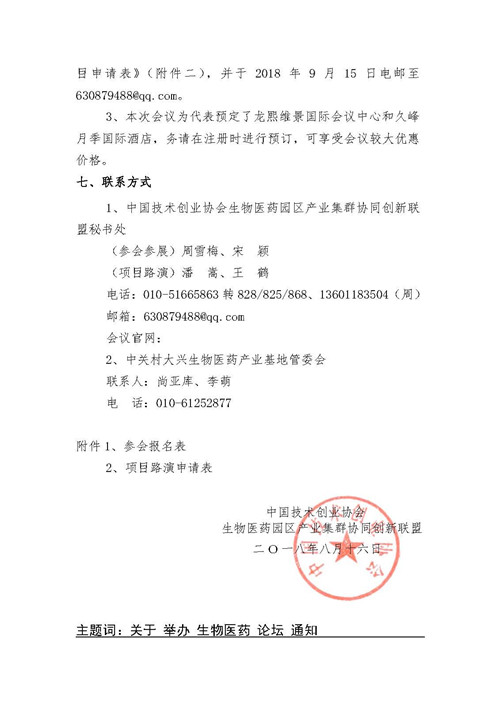 關(guān)于舉辦“2018中國(guó)生物醫(yī)藥產(chǎn)業(yè)高質(zhì)量發(fā)展論壇暨中國(guó)醫(yī)藥健康創(chuàng)新創(chuàng)業(yè)直通車(chē)項(xiàng)目路演”活動(dòng)的通知