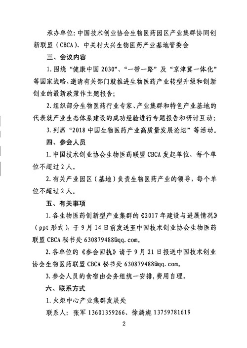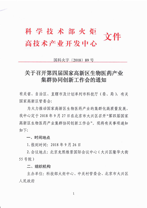 關(guān)于召開第四屆國家高新區(qū)生物醫(yī)藥產(chǎn)業(yè)集群協(xié)同創(chuàng)新工作會的通知