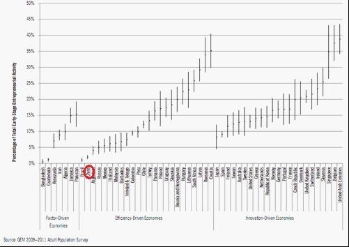 2012年1月,GEM(The Global Entrepreneurship Monitor,全球創業觀察組織)發布了全球創業觀察2011全球報告(2011 Global Report)。該報告表明:在動蕩的經濟環境下,不管是為了基本的生存還是為了實現雄心壯志,全球創業者一起為2011年描上了充滿豪情和希望的一筆。