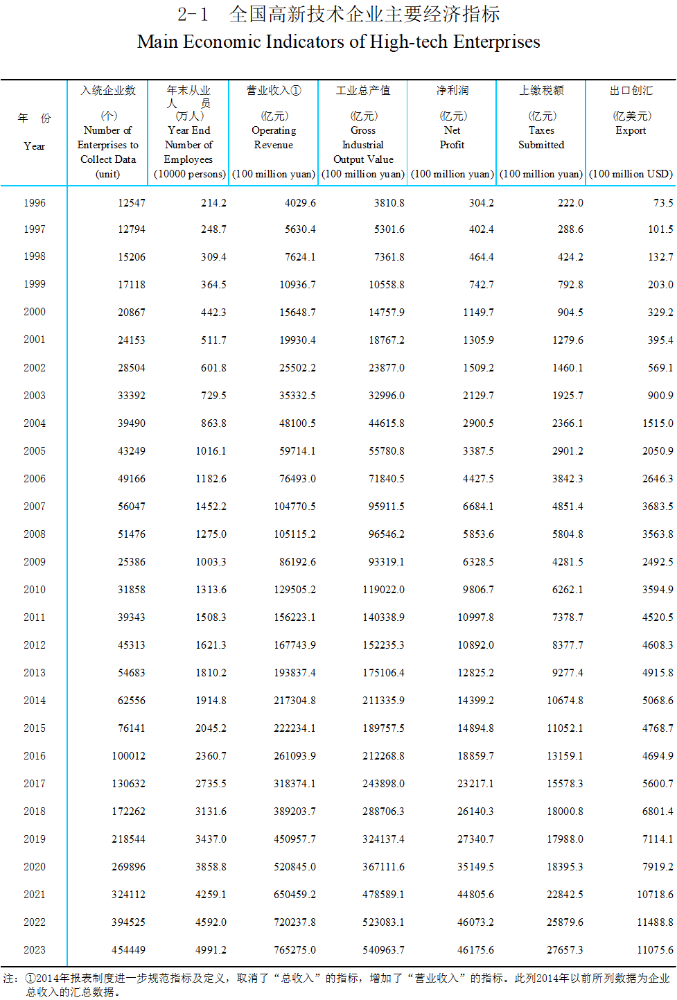 2023年全國(guó)高新技術(shù)企業(yè)主要經(jīng)濟(jì)指標(biāo)